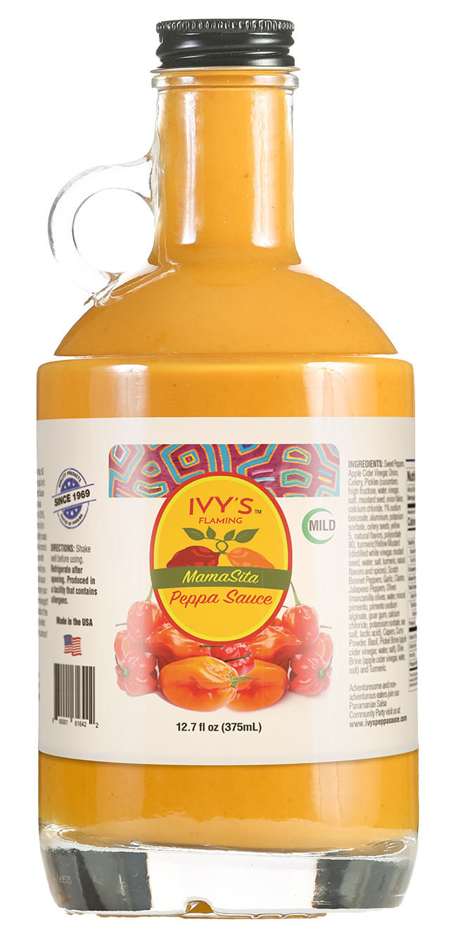 Ivy’s Peppa Sauce is a rich, luxurious sauce made from local-grown Scotch bonnet peppers, and healthy tumeric and curry. Our 100-year old Panamánian recipe is naturally low in sodium and sugar, and bursts with incredible flavor! Taste the fiesta with this one-of-a-kind sauce!